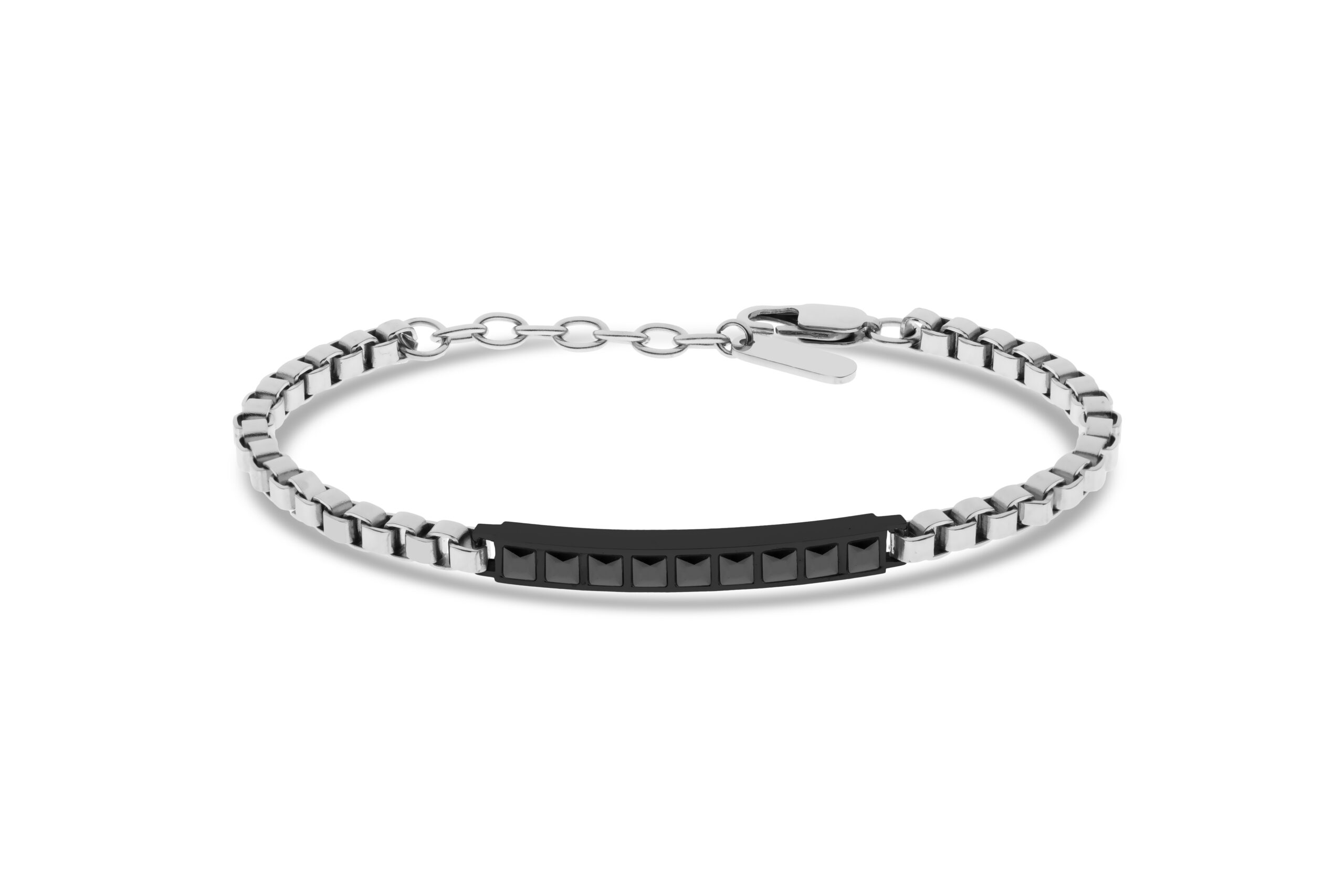 Ανδρικό βραχιόλι Liu Jo από ατσάλι σε silver με μαύρη μπάρα και λεπτή box chain αλυσίδα – κομψό, μοντέρνο και ιδανικό για κάθε περίσταση.