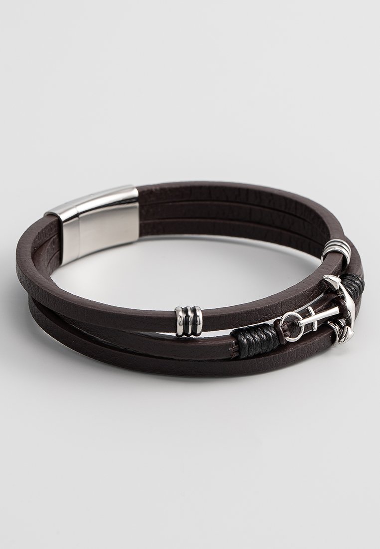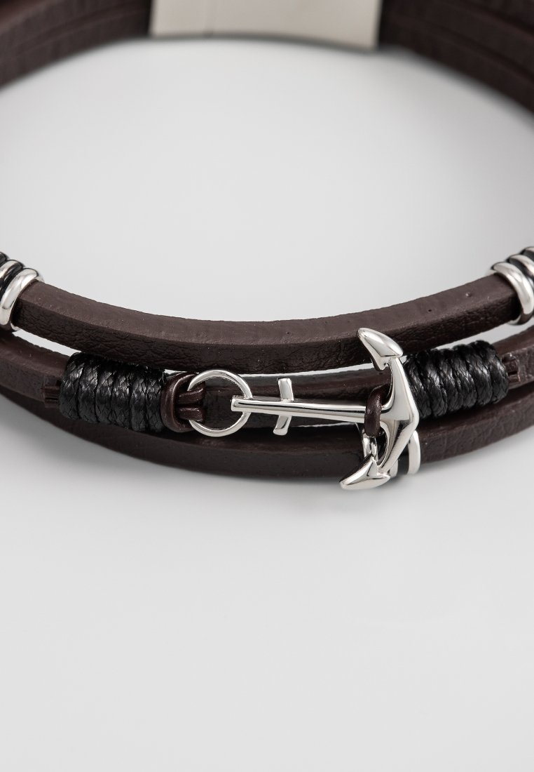 Ανδρικό βραχιόλι Bowline από γνήσιο δέρμα, μήκους 22 cm, με άγκυρα, πώματα και πόρπη από ανοξείδωτο ατσάλι. Στιβαρό και στιλάτο design.