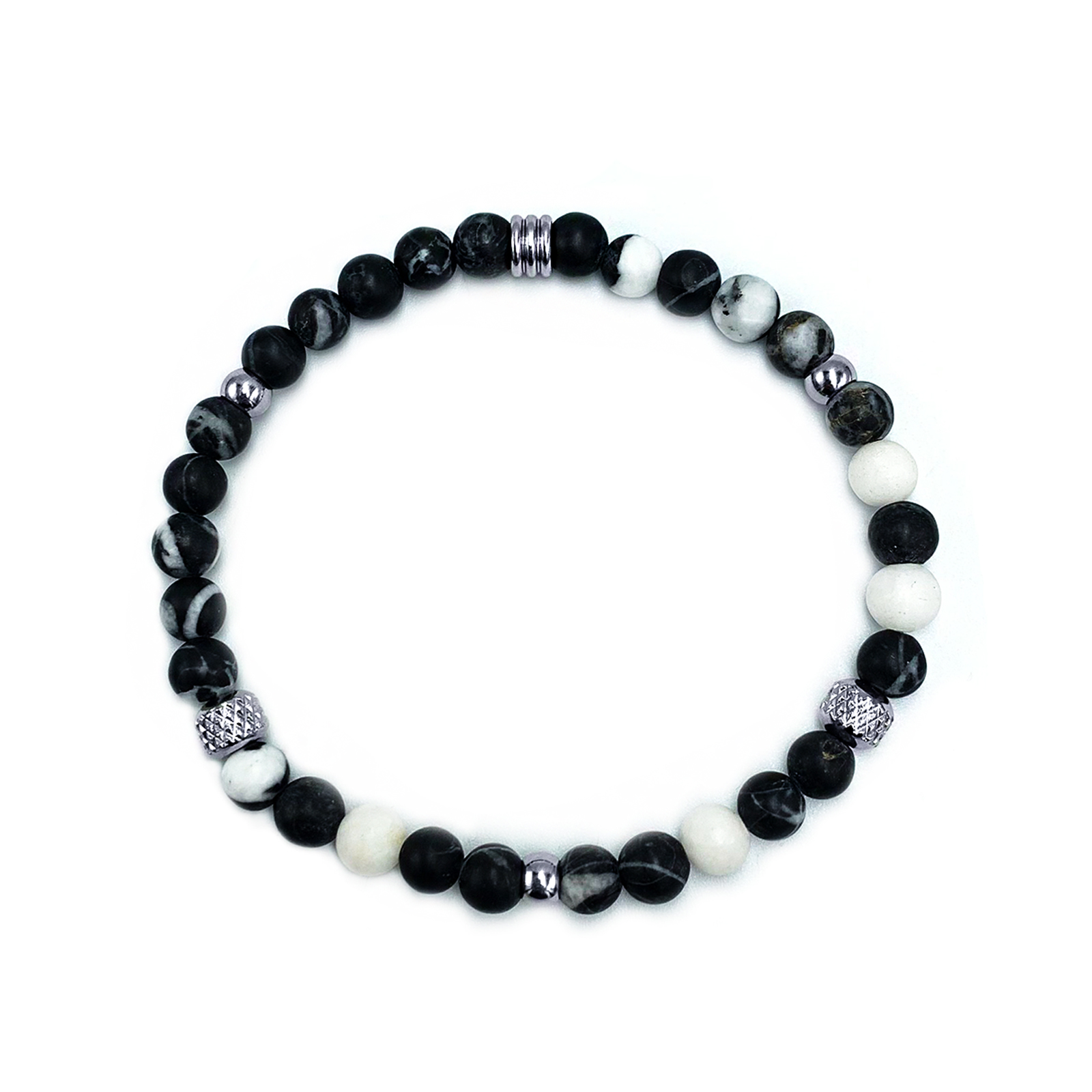 Αναδείξτε το στυλ σας με το μοναδικό ανδρικό βραχιόλι Jasper Zebra, μια κομψή επιλογή που συνδυάζει φυσικές πέτρες και ατσάλινα στοιχεία υψηλής ποιότητας. Οι χάντρες από ημιπολύτιμο λίθο Jasper Zebra διαθέτουν εντυπωσιακά μαύρα και λευκά μοτίβα, προσδίδοντας μια διαχρονική και δυναμική αισθητική.