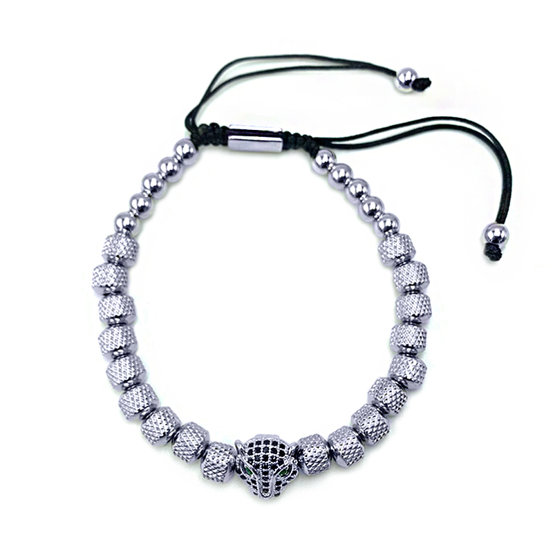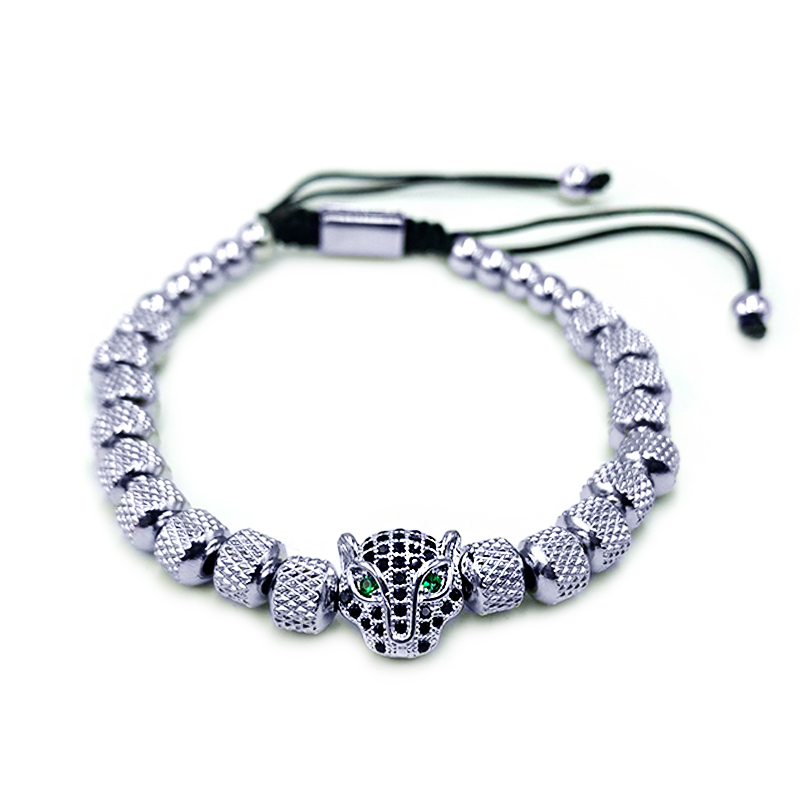Το κύριο χαρακτηριστικό του βραχιολιού είναι το εντυπωσιακό κεφάλι της τίγρης, το οποίο καταλαμβάνει κεντρική θέση και δημιουργεί μία αίσθηση επιβλητικότητας και ισχύος. Η σχεδίαση του κεφαλιού είναι προσεγμένη και λεπτομερής, αποτυπώνοντας τα έντονα χαρακτηριστικά του ζώου, όπως τα αυτιά, τα μάτια και τα δόντια, με ιδιαίτερη έμφαση στη δυναμική έκφραση του προσώπου της τίγρης. Αυτή η αναπαράσταση κάνει το βραχιόλι ιδιαίτερα εκφραστικό και αναγνωρίσιμο, με ένα δυναμικό στυλ που δεν περνά απαρατήρητο.