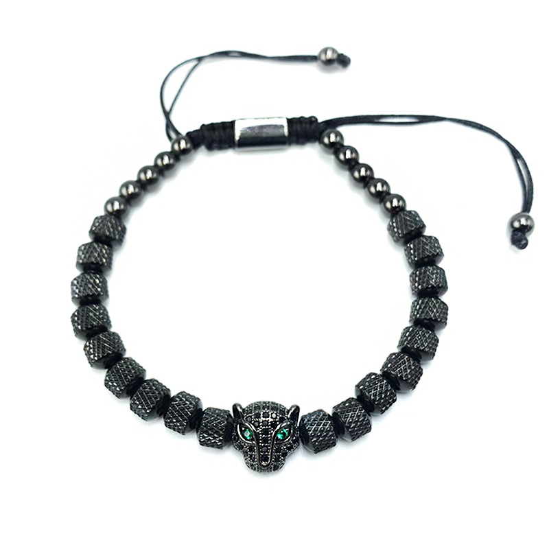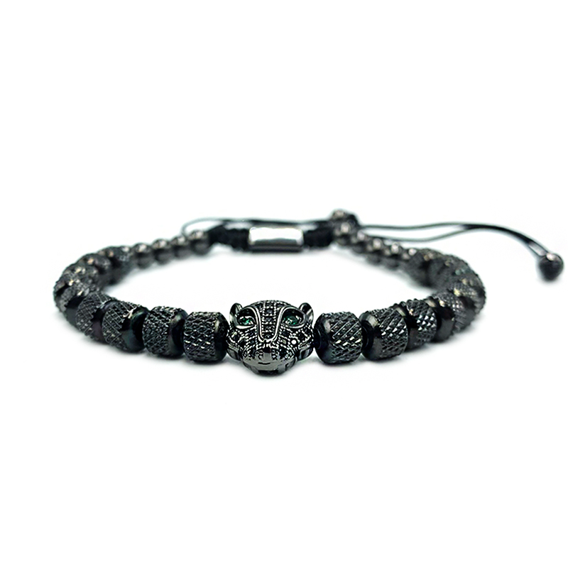 Το κύριο χαρακτηριστικό του βραχιολιού είναι το εντυπωσιακό κεφάλι της τίγρης, το οποίο καταλαμβάνει κεντρική θέση και δημιουργεί μία αίσθηση επιβλητικότητας και ισχύος. Η σχεδίαση του κεφαλιού είναι προσεγμένη και λεπτομερής, αποτυπώνοντας τα έντονα χαρακτηριστικά του ζώου, όπως τα αυτιά, τα μάτια και τα δόντια, με ιδιαίτερη έμφαση στη δυναμική έκφραση του προσώπου της τίγρης. Αυτή η αναπαράσταση κάνει το βραχιόλι ιδιαίτερα εκφραστικό και αναγνωρίσιμο, με ένα δυναμικό στυλ που δεν περνά απαρατήρητο.