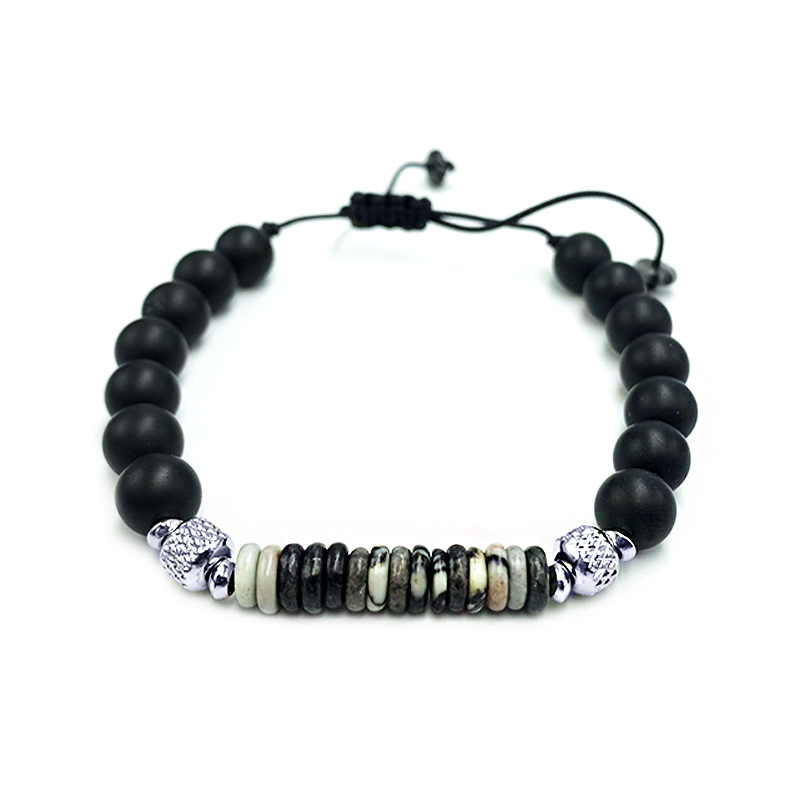 Μακραμέ βραχιόλι με μαύρο όνυχα και αχάτη, συνδυάζοντας τη φυσική ομορφιά των πολύτιμων λίθων με την παραδοσιακή τεχνική του μακραμέ. Το μαύρο όνυχα προσφέρει κομψότητα και ένταση, ενώ ο αχάτης προσθέτει μία γήινη αίσθηση και ισχυρή ενέργεια. Ιδανικό για ένα ξεχωριστό και στυλάτο αξεσουάρ.