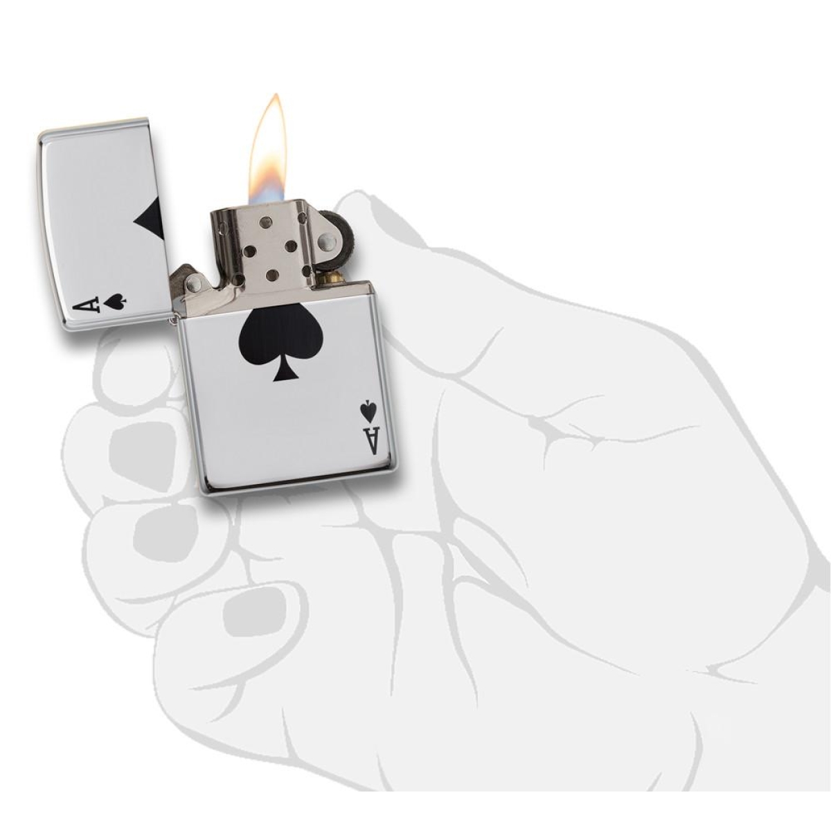 Αυτός ο αντιανεμικός αναπτήρας Zippo, με φινίρισμα High Polish Chrome, έχει το άσσο μπαστούνι πάνω του, τυπωμένο με τη μέθοδο Color Image.