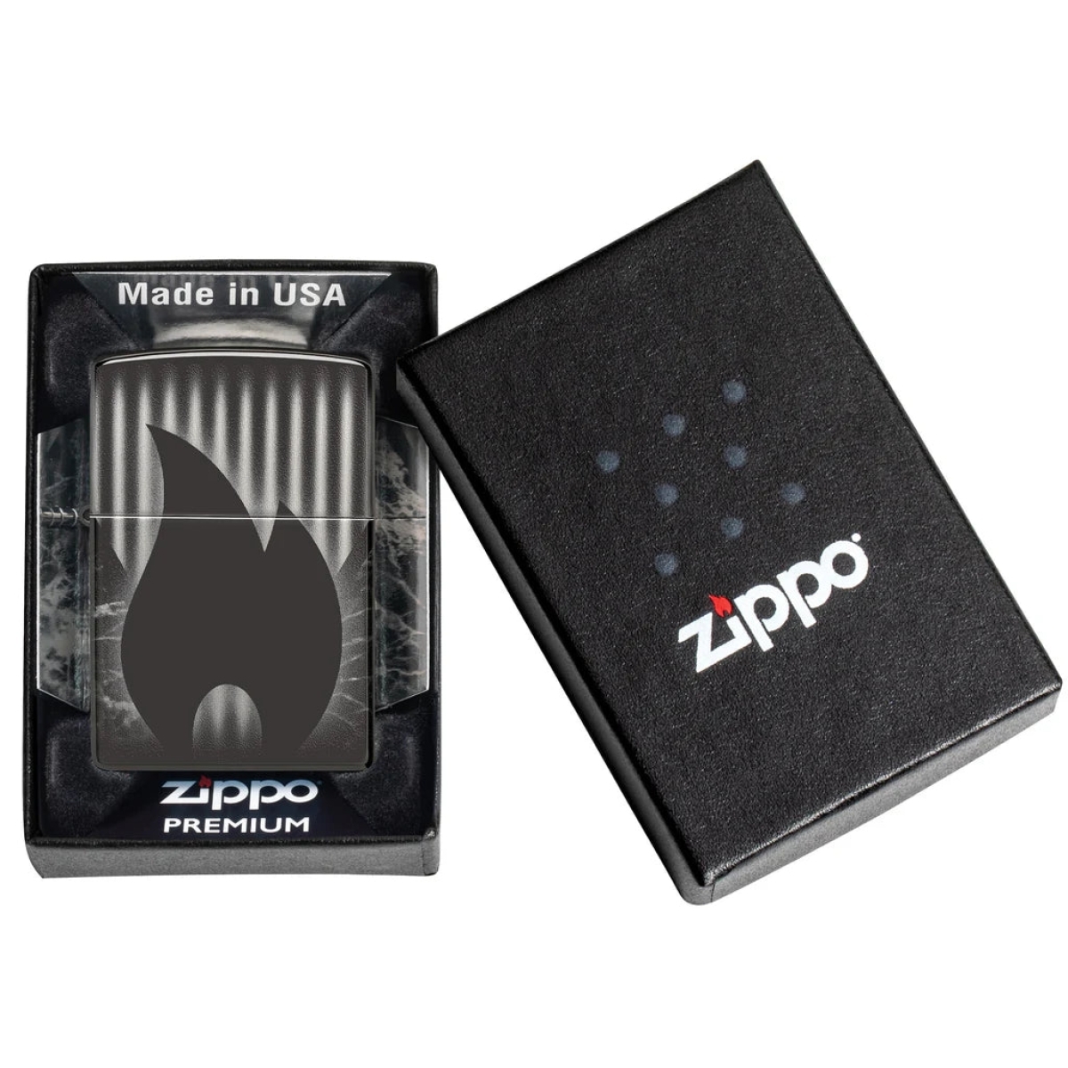 Το κλασικό εικονίδιο της φλόγας Zippo βρίσκεται στο επίκεντρο αυτού του κομψού αναπτήρα High Polish Black, που περιβάλλεται από διακριτικά μοτίβα σε όλες τις πλευρές σε απρόσκοπτη σχεδίαση Photo Image 360°. Διατίθεται συσκευασμένο σε συσκευασία δώρου. Για βέλτιστη απόδοση, γεμίστε με καύσιμο αναπτήρα Zippo.